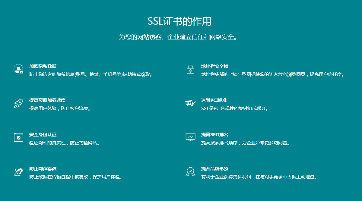 SSL證書能自動激活瀏覽器顯示“鎖”型安全標志,地址欄以“https”開頭,意味著在客戶端瀏覽器和Web服務器之間已建立起一條SSL安全加密通道,此時用戶在線輸入的信用卡號、交易密碼等機密信息在網絡傳輸過程中將不會被查看、竊取和修改,SSL證書為互聯網數據傳輸保駕護航。
